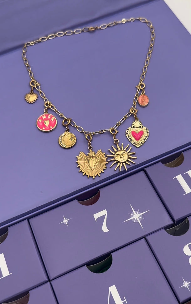 12 cases, 12 petits trésors scintillants à découvrir jour après jour pour créer votre collier grigri.
