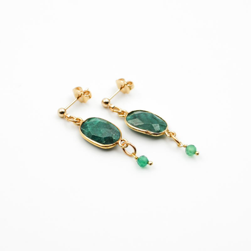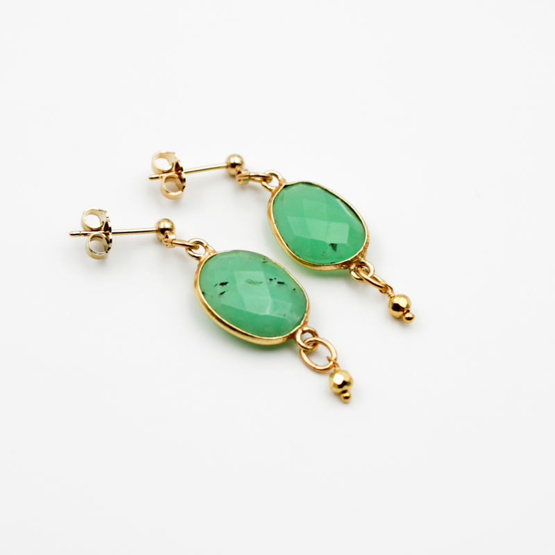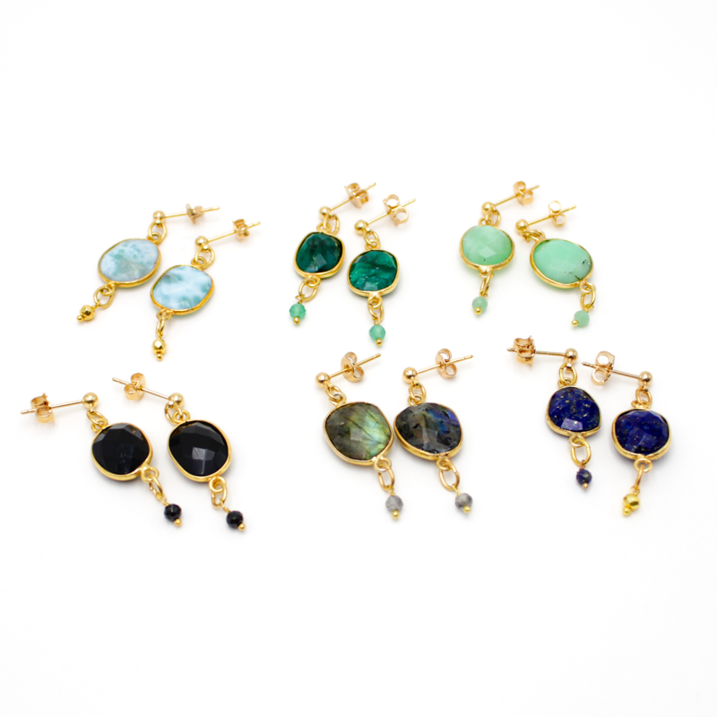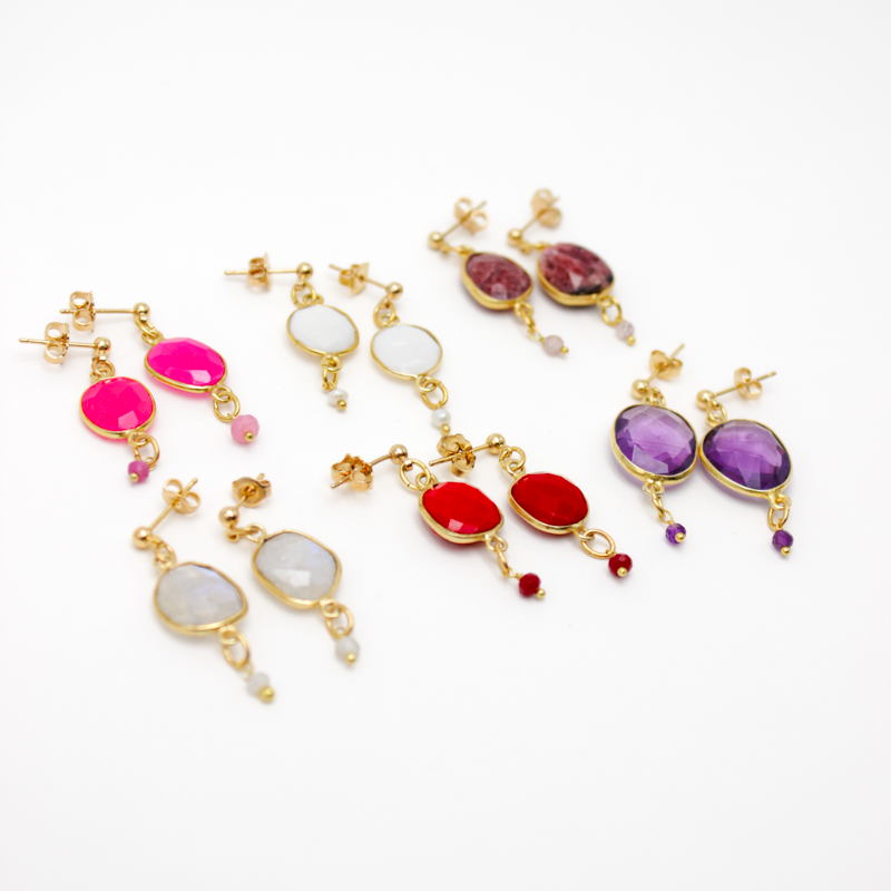 Des boucles d’oreilles très féminines et épurées pour celles qui aiment la simplicité. Ces boucles d’oreilles sont composées de médaillon serti d’une pierre naturelle colorée.