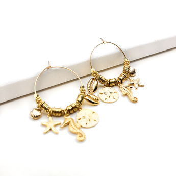 Ces créoles sont ornées de petits grigris qui ajoutent mouvement et caractère à votre style. Leur design délicat et symbolique en fait un bijou versatile, parfait pour accompagner aussi bien vos tenues du quotidien que vos looks plus habillés.