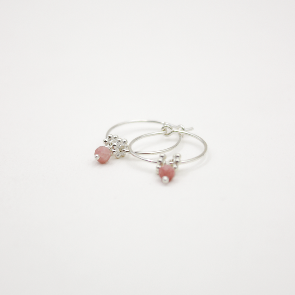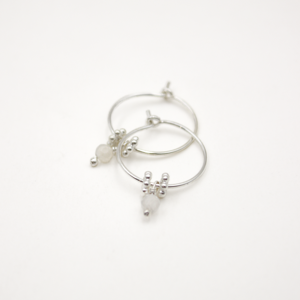 Découvrez notre paire de mini créoles perles, disponibles en 6 pierres fines : Chrysoprase, Rhodonite et Pierre de lune. Chaque paire allie l'élégance des créoles argentées à la beauté naturelle des pierres naturelles.