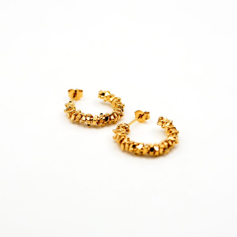 Ces créoles apportent une note subtile et élégante, idéales pour un usage quotidien ou pour compléter une tenue de soirée. Leur finition dorée et les perles scintillantes capturent la lumière, ajoutant une touche d'éclat à votre style.