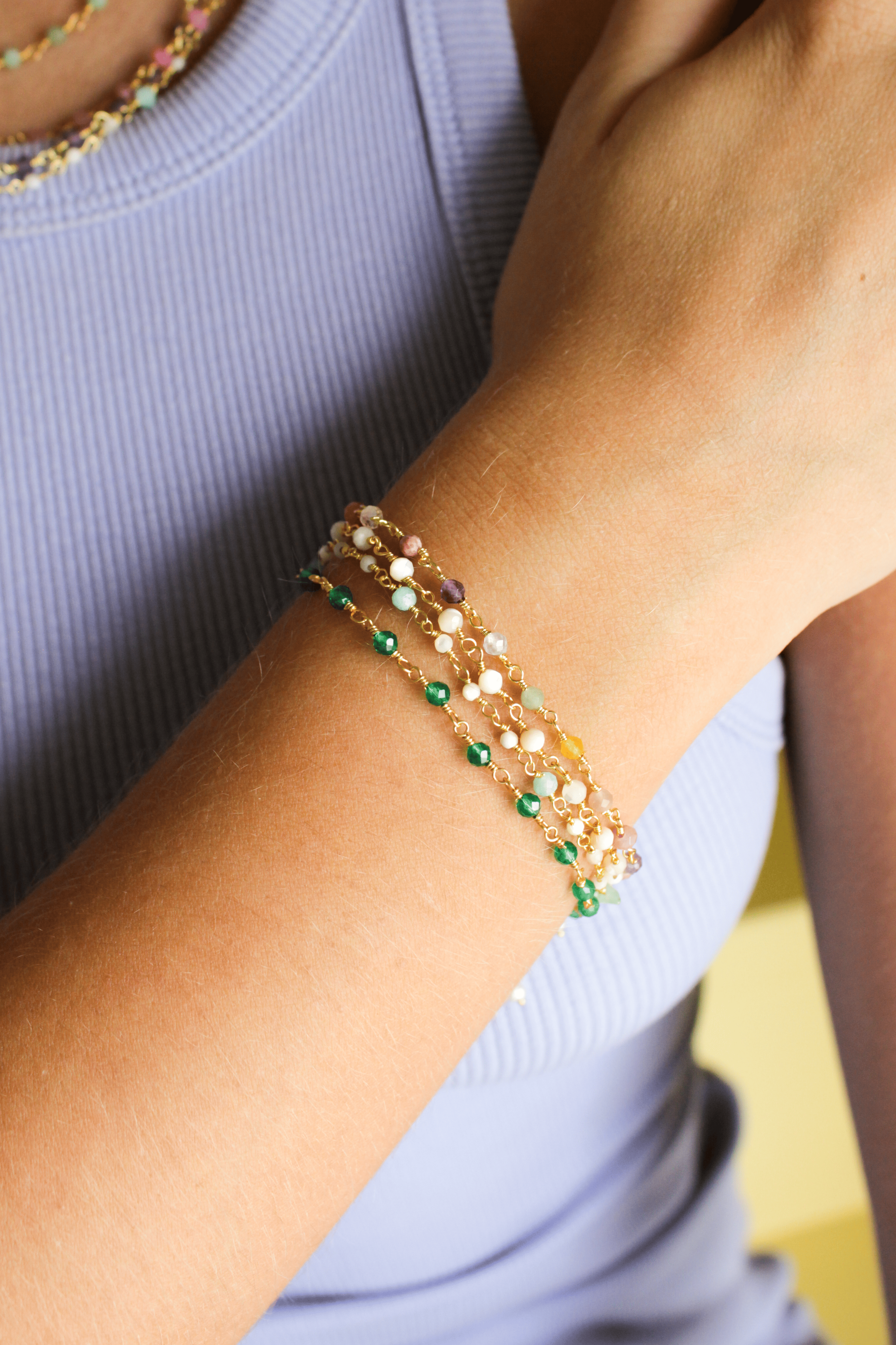 Le bracelet perles CAROLE est la pièce essentielle, le basique qui attirera le regard à chacun de vos mouvements. Composé d’une chaîne de perles en pierres fines colorées, il s'adapte à tous vos looks.