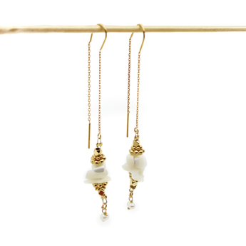 Ces boucles d’oreilles pendantes sont composées de perles crunchs en nacre, apportant légèreté et élégance à vos oreilles. Leur design lumineux capte subtilement la lumière, illuminant vos tenues avec délicatesse. Un bijou versatile, à porter seul pour un style raffiné ou en accumulation pour un look bohème chic affirmé.