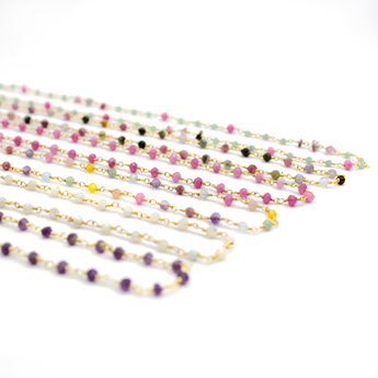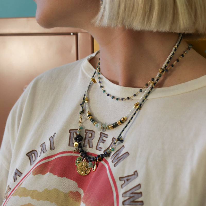 Retrouvez les pierres fines des bracelets de la gamme CAROLE en version colliers. Des chaînes dorées avec des pierres naturelles aux jolies couleurs unies ou multicolores.