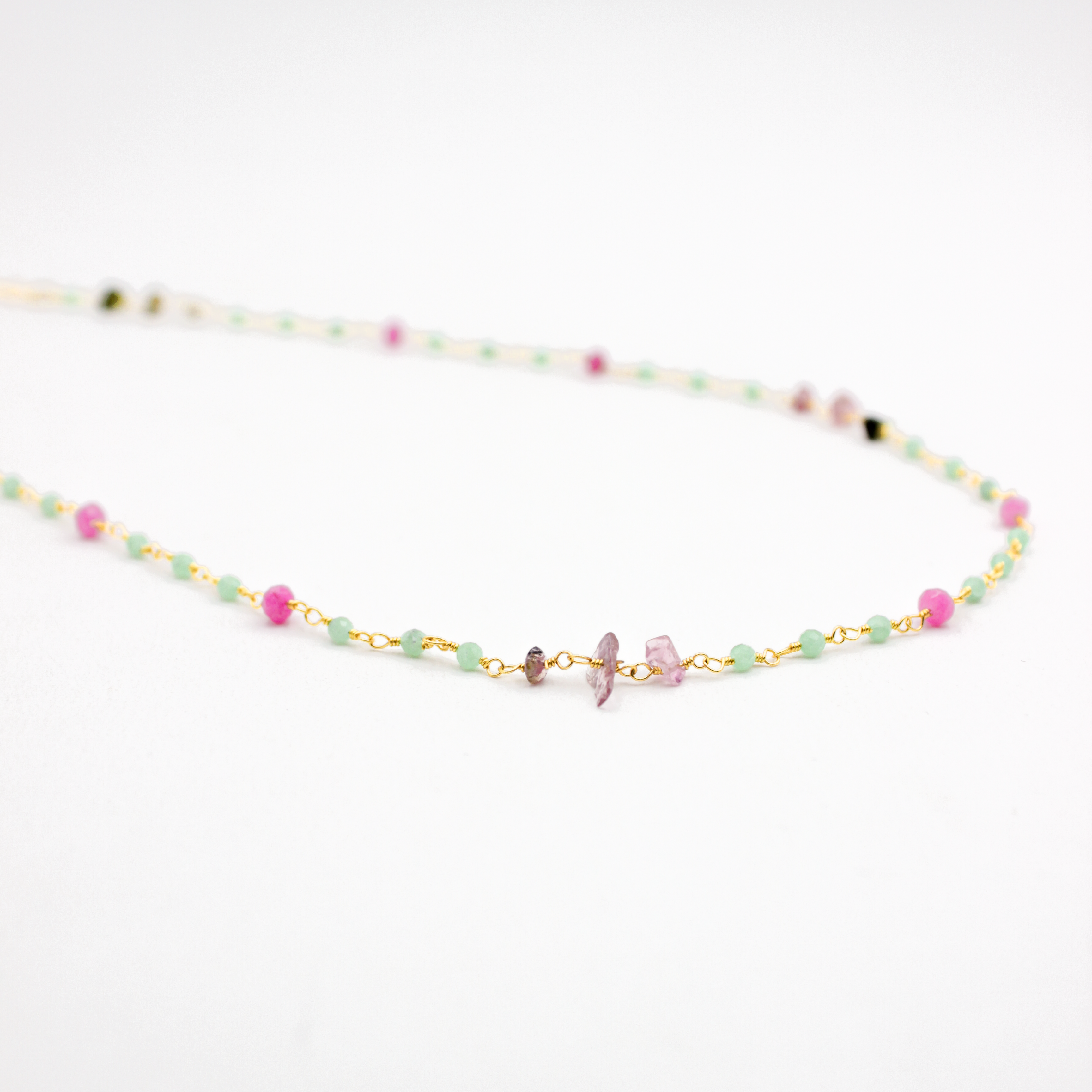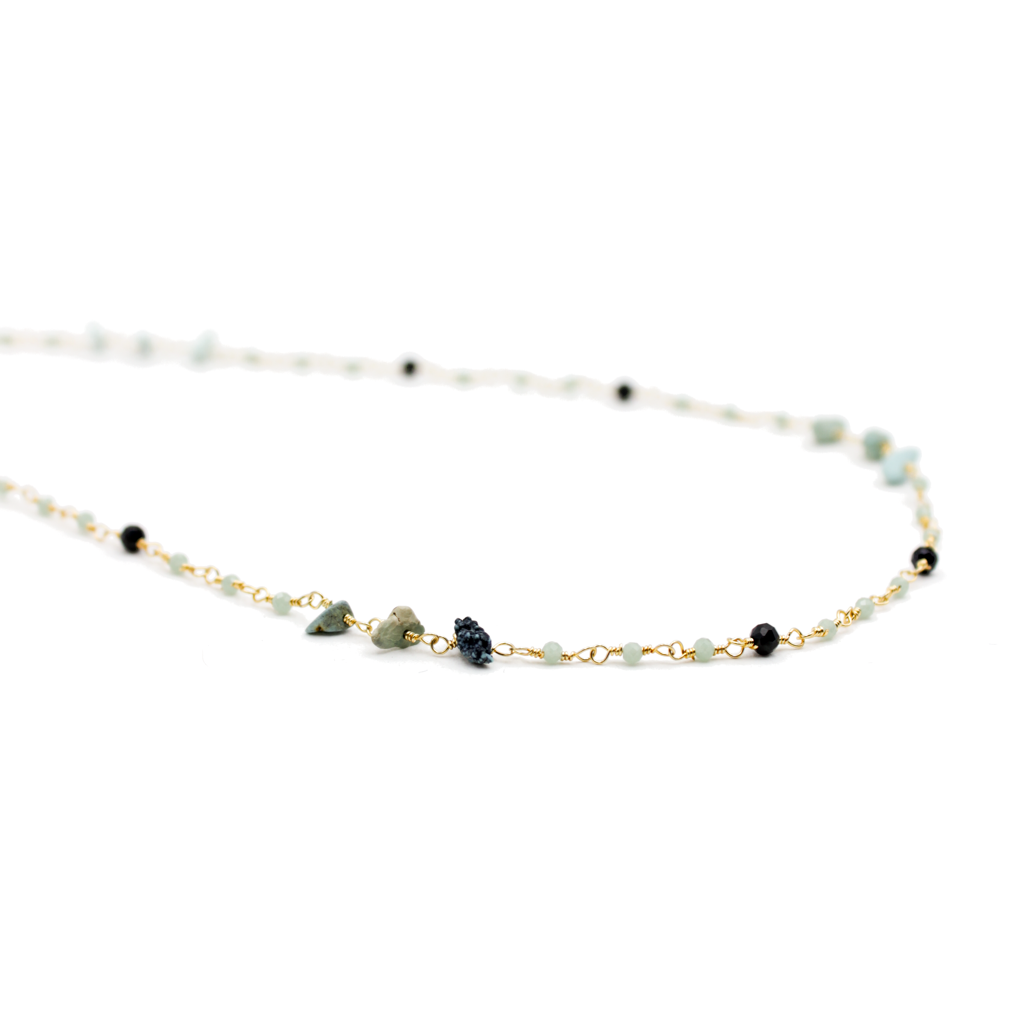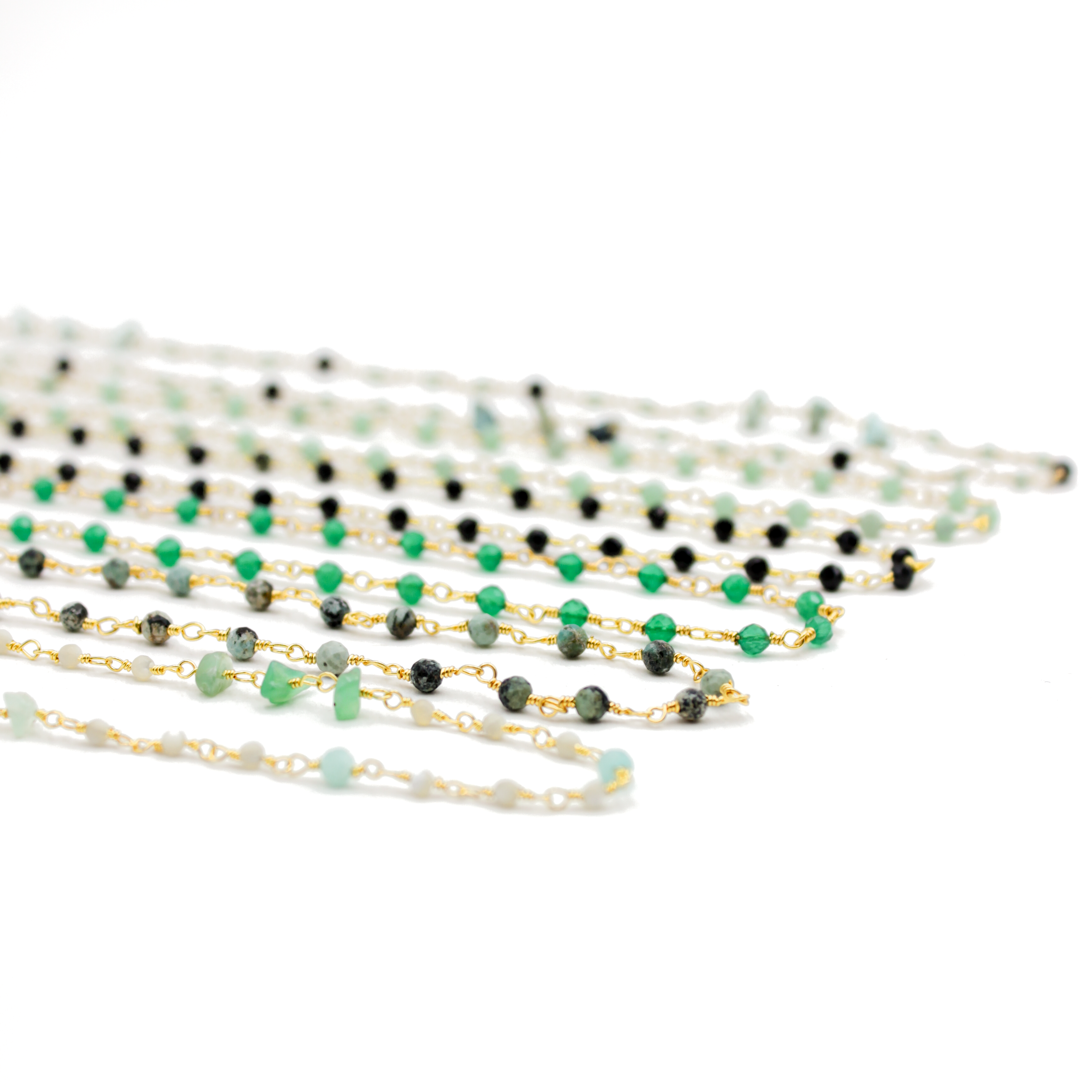 - Pierres fines : Nacre, Tourmaline, Onyx noir, Onyx vert, Jaspe aquaterra, Améthyste, Chakra pastel, Calcédoine rose, Chrysoprase/Calcédoine rose, Chrysoprase, Turquoise/Onyx noir, Nacre/Chrysoprase