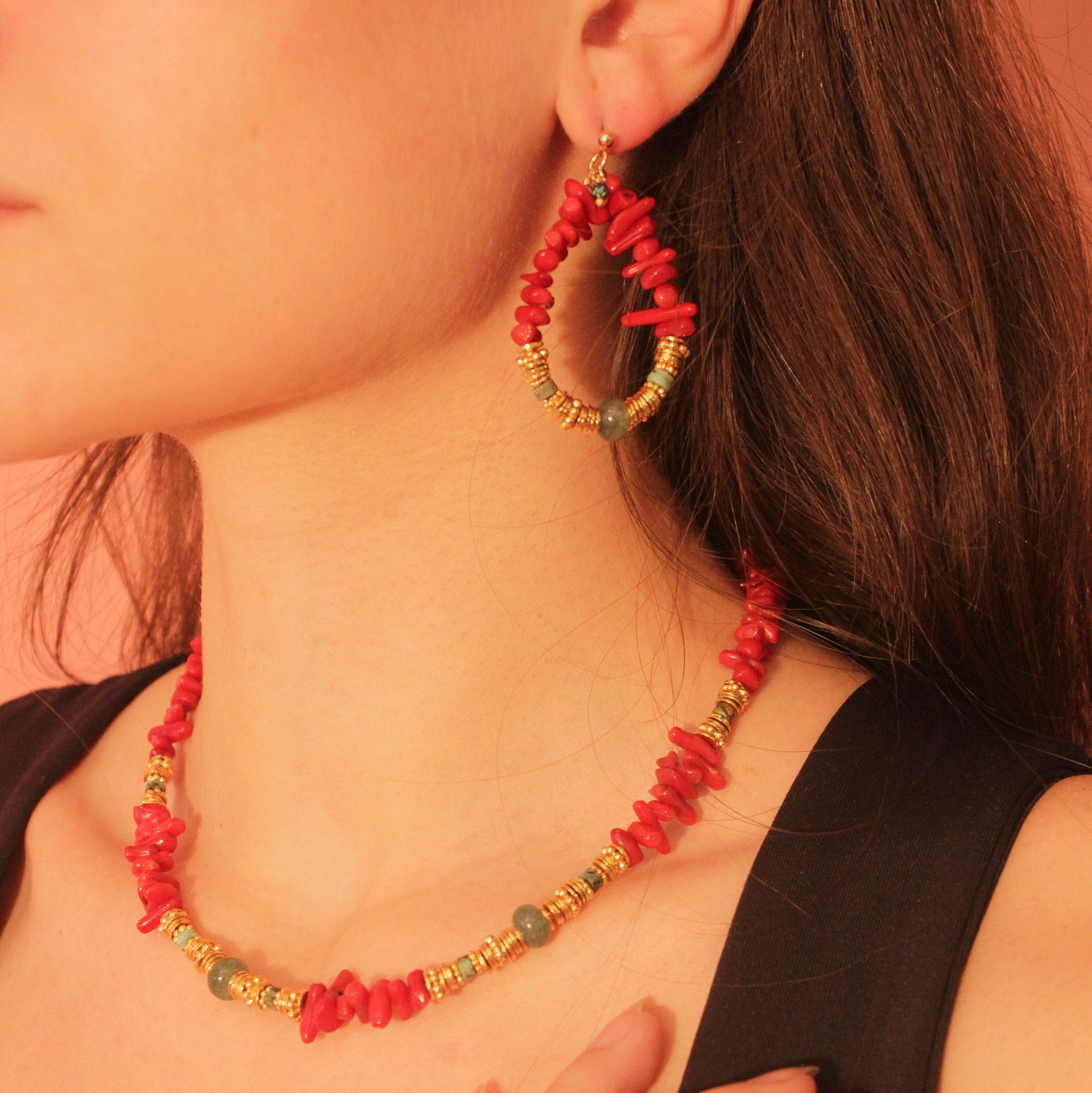 Des boucles d’oreilles solaires et équilibrantes, composées de perles heishi en corail, fluorite et turquoise. Chaque pierre naturelle apporte sa propre vibration pour illuminer le visage et l’esprit.