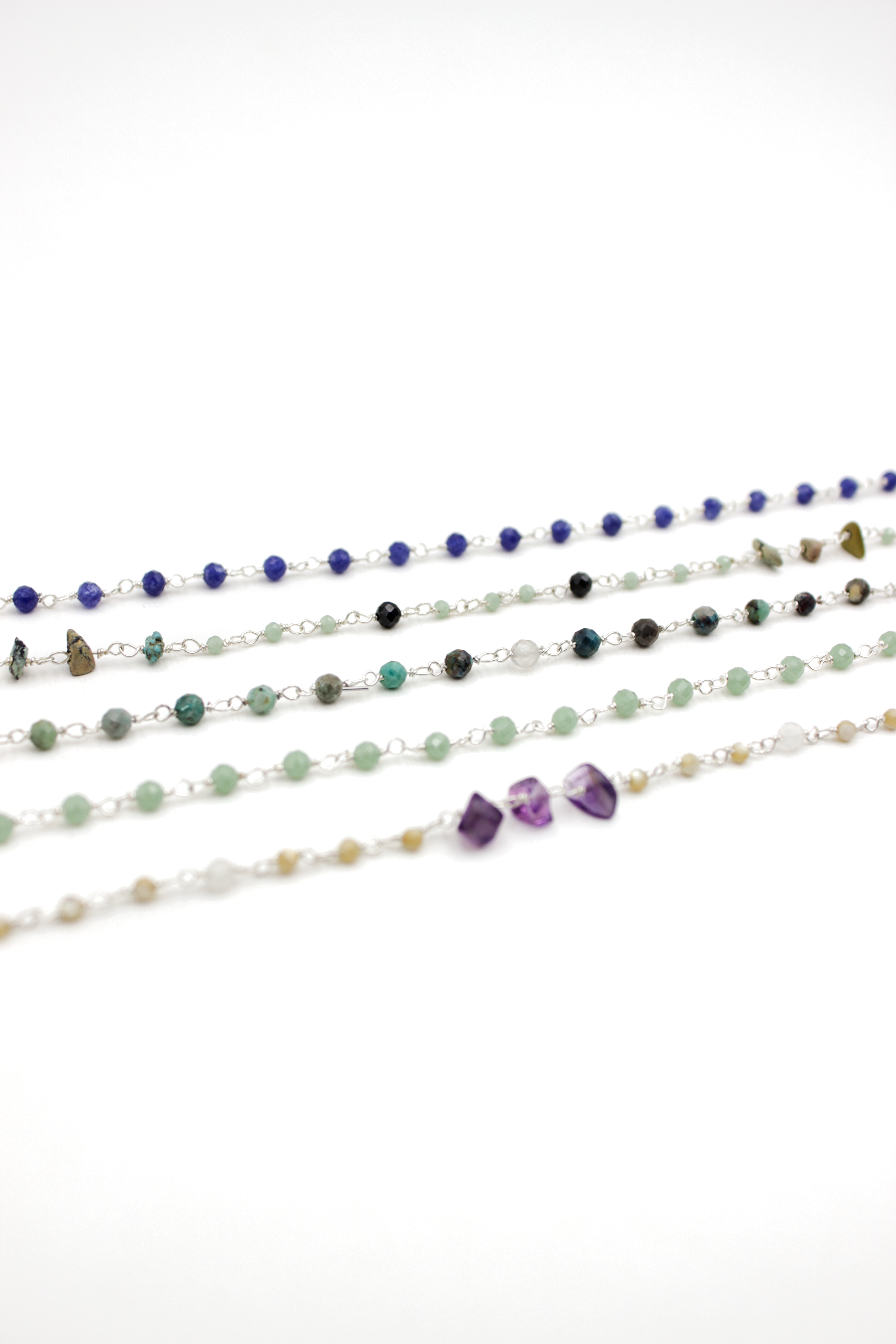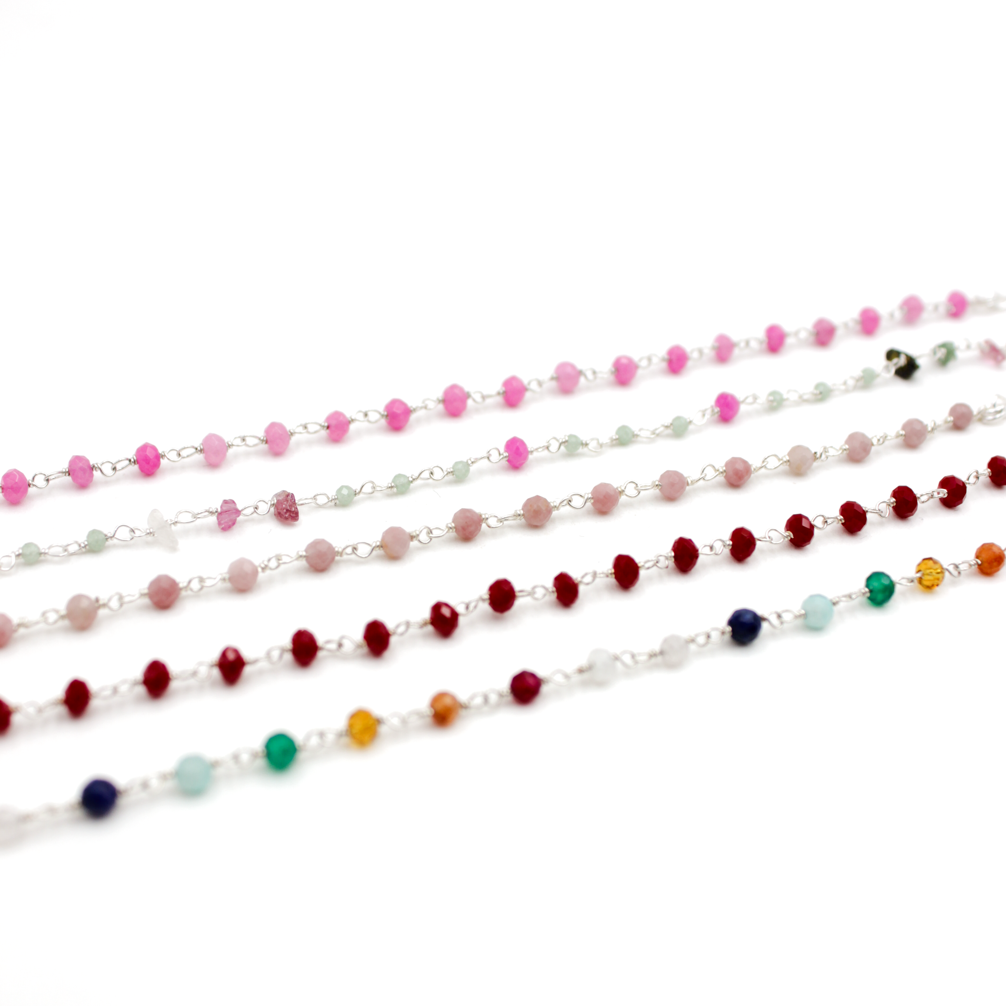 - Pierres fines : Chrysoprase, Calcédoine rose, Azurite, Rhodonite, Corail, Multico chakra, Chrysoprase/Calcédoine rose, Saphir, Chrysoprase/Onyx noir, Nacre/Améthyste